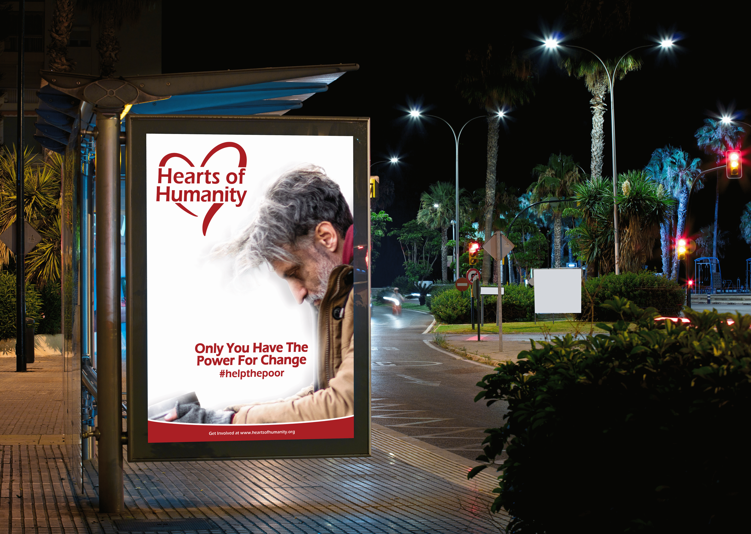 The project focuses on the social issue of poverty and consists of a print advertisement, a social media post, and a T-shirt design. Each element is designed to complement the others visually while effectively conveying the campaign's message, educating the audience, and inspiring support. *Note: Hearts of Humanity is a fictitious organization created solely for the purposes of this project.